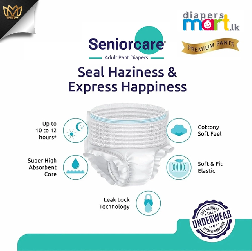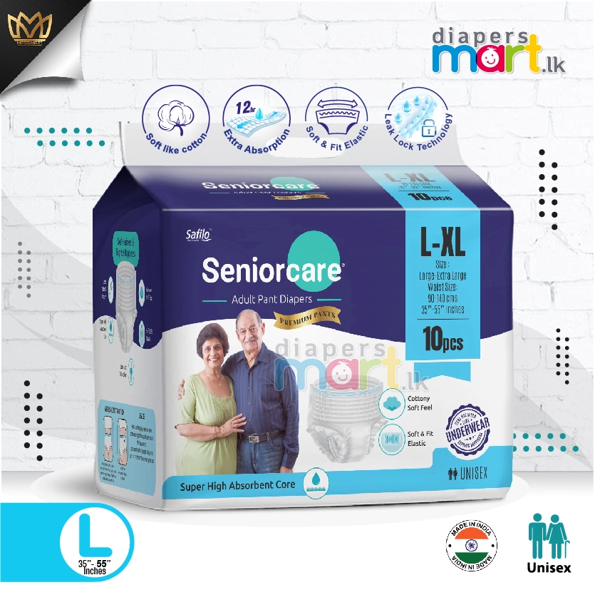 Seniorcare adult diapers are specially designed to fit both men and women. Contours to your body for a comfortable fit like a real underwear. Allows for easy removal and quick disposal of diapers. Leg cuff assures fit and protection against leakage. Soft and comfortable waist panel helps in discreet fit. Quickly locks fluids away and helps eliminate odour. Join countless satisfied customers who have embraced comfort, reliability, and discretion with our SENIORCARE Adult Pant Diapers. Experience the difference in care and confidence with every use!